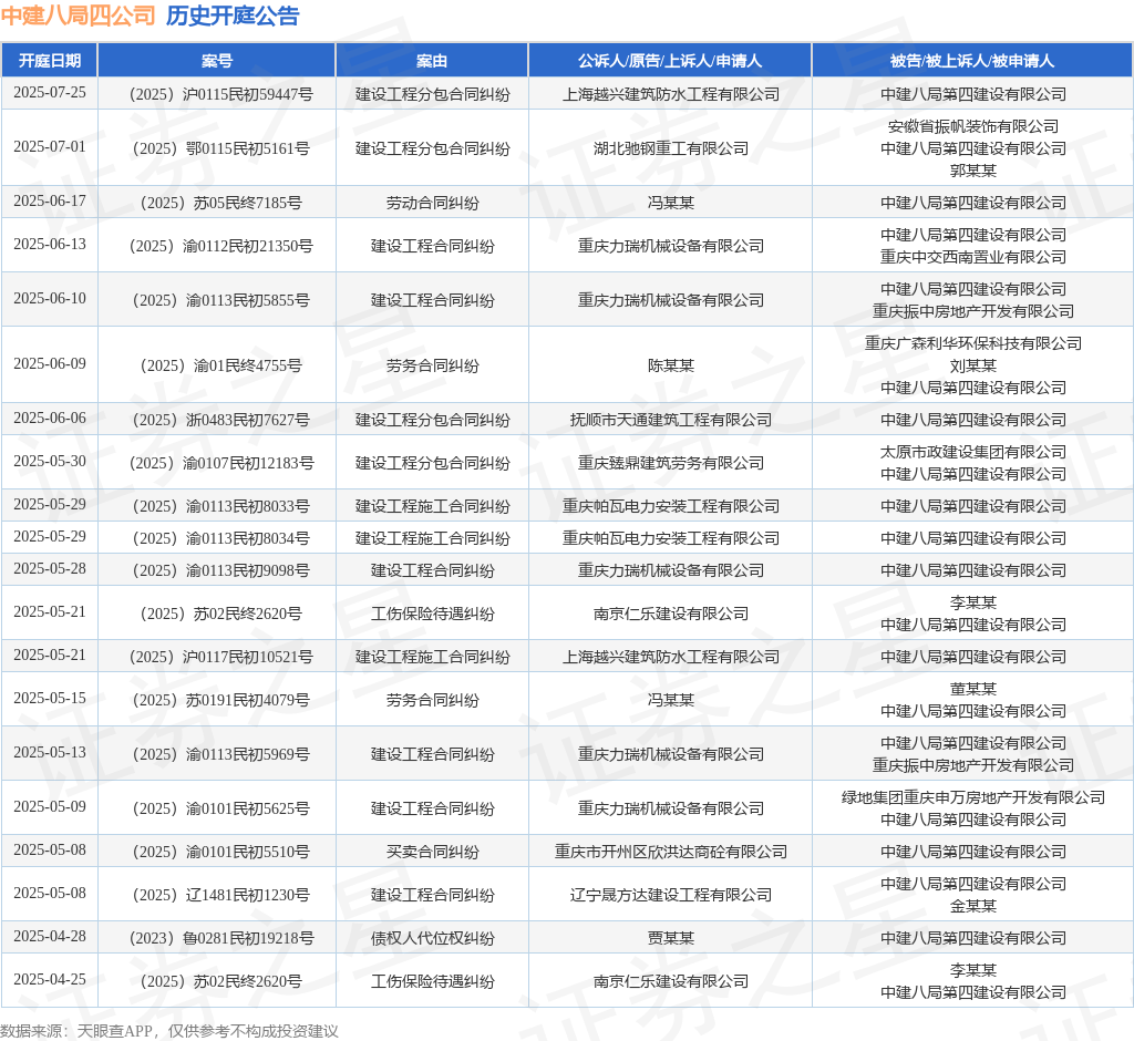 本站消息,根据天眼查APP显示,近日公布了一则中建八局第四建设有限公司作为被告/被上诉人的开庭公告,详细内容如下: